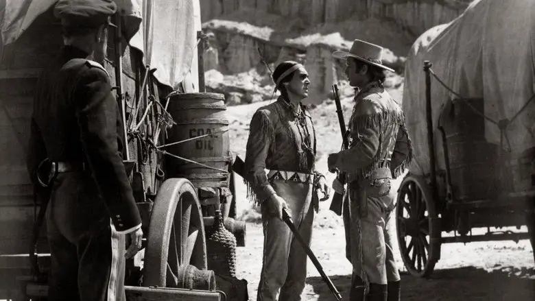 It's 1848 and a wagon train with an Army escort is heading west through Indian territory, It's scout is Davy Crockett, nephew of his more famous namesake. There is spy amongst them informing the Indians. They survive the first Indian attack and then push on. They have a choice of two passes through the mountains. Learing of the pass to be defended by the Indians, they head for the other. But upon ariving, the Indians attack. Somehow they have been informed.