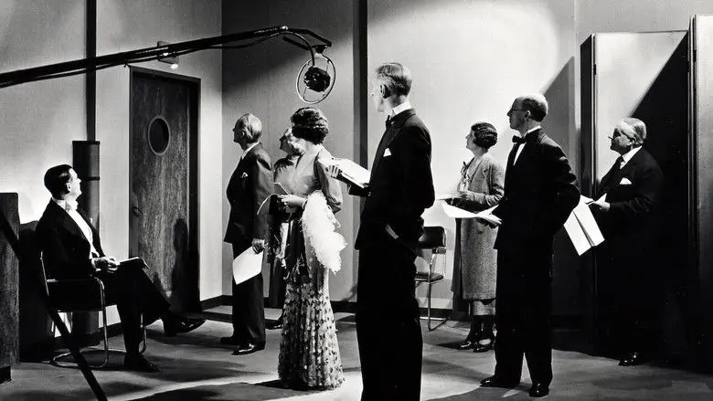An actor is murdered live on air whilst a play is being broadcast. Everyone in the play and broadcasting house fall under suspicion.